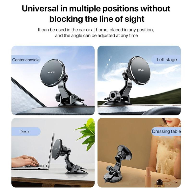 هولدر یا نگهدارنده ، وسیله ای کاربردی برای نگهداری گوشی داخل ماشین یا روی میز است . انواع پایه های نگهدارنده نگهداری گوشی را برای رانندگان آسان کرده است و با استفاده از این وسیله، توانستهاند بدون اینکه مشکلی در هنگام رانندگی از گوشی خود کاملا ایمن محافظت کنند. استند گوشی یسیدو مدل C177 طراحی شیک و زیبایی دارد و به لطف طراحی حرفه ای و مینیمال باعث میشود تا بدون آنکه فضای زیادی را داخل خودرو اشغال کند، به راحتی از آن استفاده کنید. این هلدر حرفه ای برای گوشی های آیفون سری 12 ، 13 ، 14 ، 15 و بالاتر طراحی شده که با استفاده از قابلیت مگ سیف به گوشی می چسبند ، البته با استفاده از برچسب آهنربایی که همراه آن عرضه می شود می توان برای کلیه گوشی های موبایل نیز از آن استفاده کرد زیر پایه این هولدر، مکنده ای قدرتمندی وجود دارد که به سطح مورد نظر میچسبد و به راحتی از آن جدا نمیشود. به دلیل نوع اتصال این استند کاربران میتوانند از آن برای هر مدل اتومبیل استفاده کنند و آن را روی شیشه یا داشبورد بچسبانند. البته این استند برای انواع سطوح دیگر مانند میز و ... نیز قابل استفاده است. این هولدر، با استفاده از نیروی مغناطیسی (آهن ربایی) گوشی شما را نگه می دارد. همراه محصول برچسب آهن ربایی به شکل گرد وجود دارد که می توانید آن را به پشت گوشی و یا قاب آن چسبانده تا گوشی روی هولدر قرار بگیرد.کاربردیترین ویژگی این پایه نگهدارنده گوشی، قابلیت چرخش 360 درجه آن است و کاربران میتوانند سَری استند را در هر جهتی بچرخانند. به همین دلیل افراد میتوانند استند را در هر زاویهای که بخواهند و متناسب با نیاز خود تنظیم کنند تا بیشترین تسلط را روی صفحه نماش گوشی خود داشته باشند.