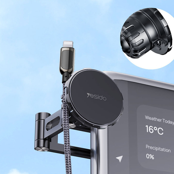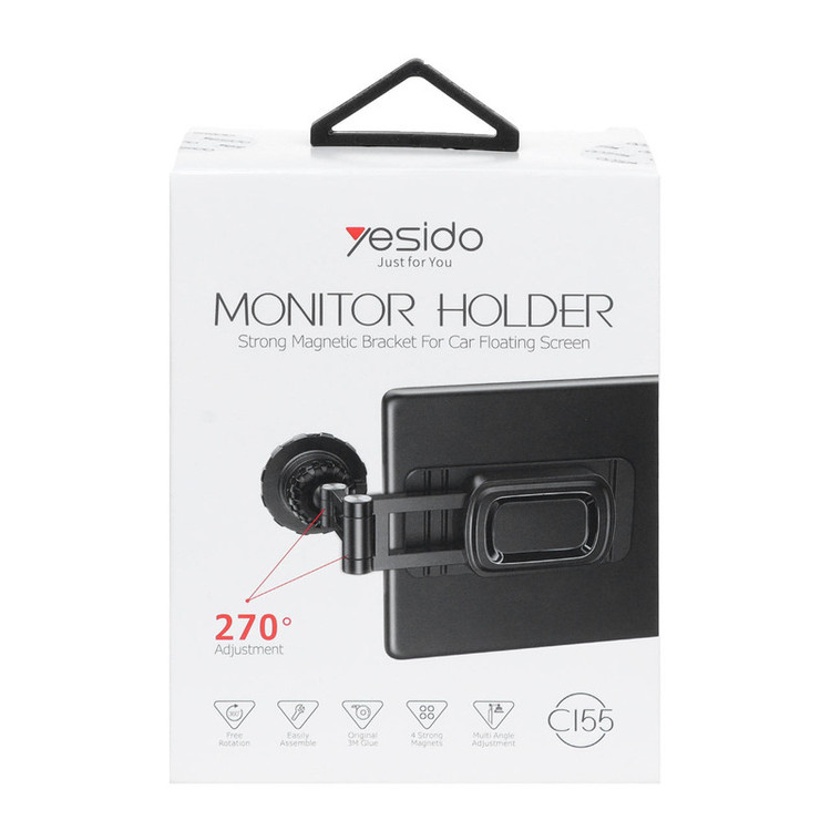 پایه نگهدارنده گوشی پشت مانیتور خودرو C155 محصولی از شرکت یسیدو است. این محصول جهت نگهداری افقی و عمودی گوشی موبایل مورد استفاده قرار میگیرد. گفتنی است محل نصب محصول در مانتیتور خودرو می باشد. این هولدر توانایی چرخش 360 درجه گوشی موبایل را داراست. نکته قابل توحه در این محصول چرخش 180 درجه پایه تلسکوپی نگهدارنده آن است. به سبب مکش قوی توسط 4 آهنربای قوی N50 به شما این اطمینان را میدهد که در دست اندازهای شهری از گوشی شما به خوبی نگهداری خواهد کرد. یکی مزیت های این محصول تعبیه محلی برای نگهداری کابل شارژر گوشی است، بنابراین نگران اتمام شارژر در حین سفر و مسیریابی نباشید. جنس بدنه این محصول از سیلیکون و TPE ساخته شده است. از دیگر مزایای آن میتوان به موارد زیر اشاره کرد : قابلیت جمع شوندگی در پشت مانیتور در مواقع عدم کاربرد قابل استفاده در کنسول مرکزی خودرو – پشت لپتاپ – هرمکانی در خانه – پشت مانیتور خودرو دارای مگنت آهنربایی مستطیل و دایره ای