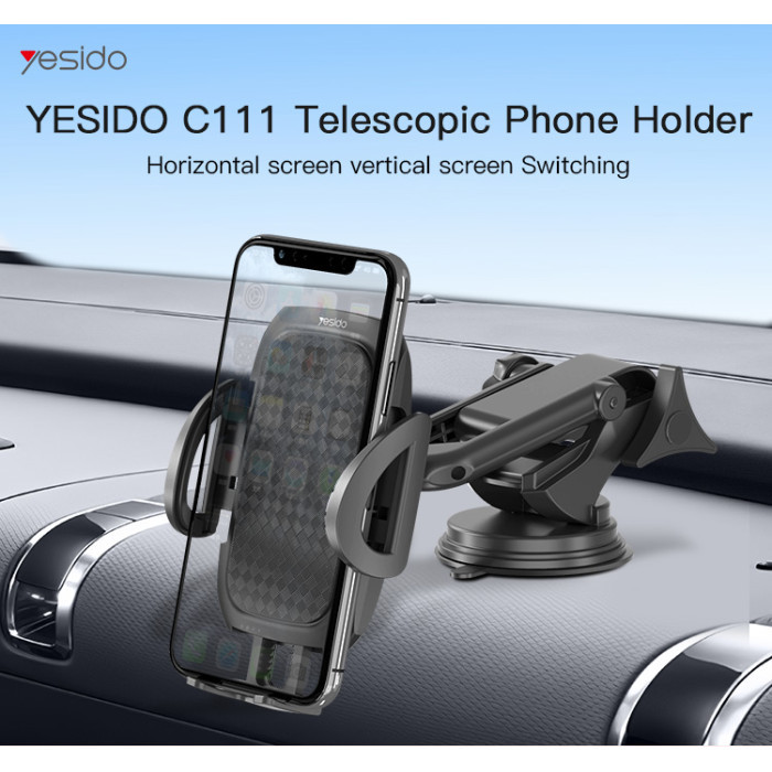قابلیت نصب روی شیشه، داشبورد خودرو و میزکار،براکت منعطف با قابلیت چرخش 360 درجهای ،پایه تلسکوپی هولدر یسیدو C111 قابل تنظیم با امکان چرخش 270 درجهای ،سازگار با گوشی تا ابعاد 9.3 الی 5 سانتی متر