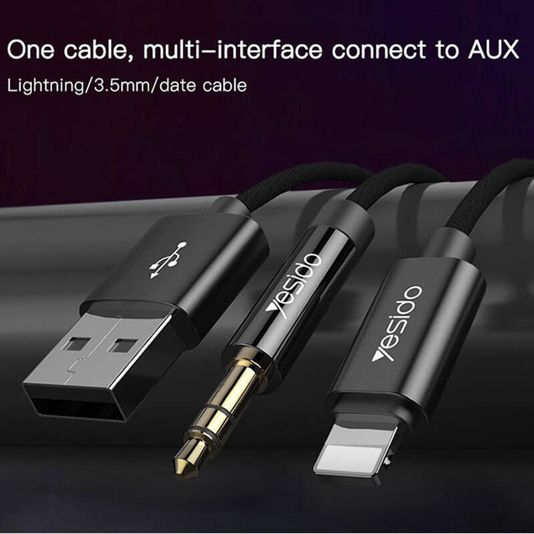 کابل تبدیل USB/جک 3.5 میلی متری به لایتنینگ یسیدو مدل YAU18 طول 1.2 متر