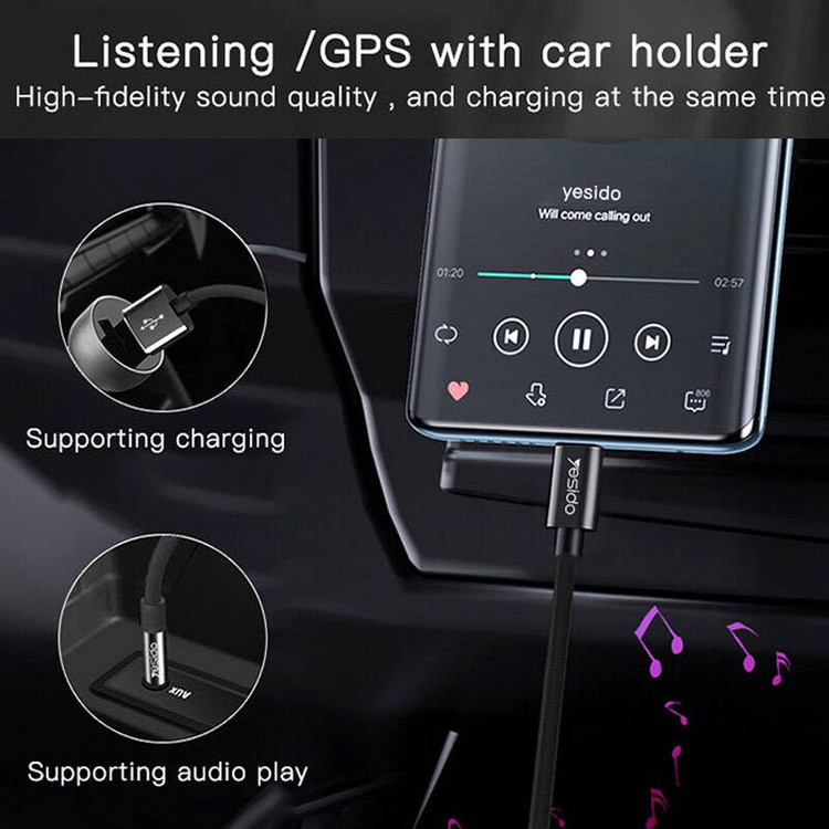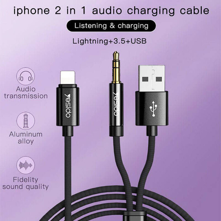 کابل AUX لایتینگ YAU18 یکی دیگر از محصولات یسیدو بوده و برای کسانی که گوشی آیفون یا تبلتهایی با درگاه لایتینگ دارند، بسیار مناسب است؛ زیرا میتوانند همزمان گوشی خود را شارژ کرده و همچنین از هدفون استفاده کنند. شما بهوسیله کابل AUX یسیدو YAU18 قادر خواهید بود تا گوشی خود را شارژ کنید. شدت جریان خروجی این کابل 2.4 آمپر بوده و با پورت لایتینگ، گوشیها و تبلتهای دارای این درگاه را شارژ خواهد کرد. با این کابل میتوانید بهراحتی گوشی خود را در داخل خودرو شخصی تان شارژ کنید. همچنین میتوانید موزیکهای دلخواهتان را از دیوایستان انتخاب کنید تا از باندهای داخل ماشین پخش شوند. این کابل یک متر و 20 سانتیمتر طول دارد که اندازه مناسبی است و شما میتوانید در زمان استفاده از آن، گوشی خود را در محدودهای به شعاع یک متر و بیست سانتیمتر جابهجا کنید. دیگر نیازی نیست به محل اتصال کابل به دستگاه خیلی نزدیک باشید و از کارهای دیگرتان بمانید.