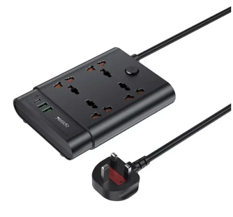 چندراهی برق Yesido MC11 با توان خروجی 2650 وات، دارای ۴ پریز برق، ۲ پورت USB و ۱ پورت Type-C با قابلیت فست شارژ است. جنس بدنه از ABS + PC مقاوم در برابر حرارت ساخته شده و طول کابل آن ۳ متر با سیم مسی خالص است که جریان پایدار را تضمین میکند. این مدل مجهز به محافظ اضافهبار و فیوز ایمنی بوده و برای شارژ همزمان چند دستگاه مانند موبایل، لپتاپ و تبلت کاملاً مناسب است.