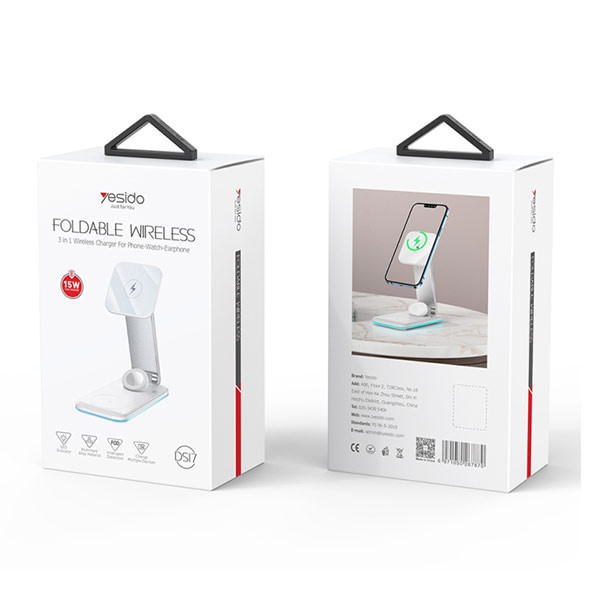 شارژر رومیزی وایرلس مدل DS17 محصولی از یسیدو است . جنس بدنه این محصول از آلیاژ الومینیوم و ABS و سلیکون و گلس است. درگاه شارژ در این محصول پورت تایپسی است. این دستگاه قابلیت شارژ موبایل، اپل واچ و ایرپاد هایی را دارد که قابلیت پشتیبانی از پروتکل QI را دارند. یکی دیگر قابلیت های این محصول قابلیت تاشو و جمع شوندگی ان است. سازگار با : Apple: iPhone 15 Plus , iPhone 15 Pro , iPhone 15 Pro Max , iPhone 15 , iPhone 14 Plus , iPhone 14 Pro , iPhone 14 , iPhone 14 Pro Max , iPhone SE 2022 , iPhone 13 Pro , iPhone 13 Pro Max , iPhone 13 mini , iPhone 13 , iPhone 12 Pro Max Apple: Watch SE 44mm , Watch SE 40mm , Watch Series 5 44mm Samsung: Galaxy S23 FE 5G , Galaxy W23 , Galaxy W23 Flip 5G , Galaxy Z Fold5 , Galaxy Z Flip5 , Galaxy A04 Core , Galaxy F04 , Galaxy A14 4G , Galaxy A24 5G , Galaxy M04 , Galaxy A34 5G , Galaxy A23s , Galaxy A54 5G , Galaxy A04e Huawei: Mate 60 RS Ultimate , Mate X5 , Mate 60 Pro+ , Mate 60 Pro , Mate 60 , Enjoy 60 , P60 Art , Mate X3 , P60 Pro , P60 , Enjoy 50 Plus , Enjoy 50z , nova 10 SE , Mate 50 RS Porsche Design Xiaomi: 14 , 14 Pro , Mix Fold 3 , 13T Pro , 13T , Poco F5 Pro , 13 Ultra , Redmi 12C , Redmi Note 12 Pro Speed , Redmi K60 Pro , Redmi K60 , 13 , 13 Pro , Redmi Note 12 5G (China) Nokia: 9 , 1 , 6.1 / 6 (2018) / 6 (2nd Gen) , 7 Plus , Lumia 1020 , Lumia 925 , Lumia 928 , Lumia 720 , Lumia 920 , Lumia 820 ONEPLUS: 12 OPPO: Find X6 Pro Vivo: X100 Pro Google: Pixel 2 , Pixel 2 XL , Nexus 5 , Nexus 4 (E960) Honor: Magic5 Pro , Magic5 , 80 Pro Flat , 80 GT , Magic Vs , 80 SE , 80 , 80 Pro , Play 40 Plus , Play6C , X40 GT , X40 , Honor Play 5T , Honor Play 20